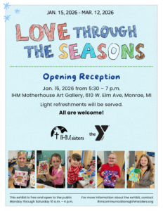 Our first exhibit of 2026 is “Love Through the Seasons”, featuring artwork by early childhood and elementary school youth from Monroe YMCA! This exhibit is displayed in the IHM Art Gallery until March 12. Stop on by to support our local youth artists. We can’t wait to see you there!